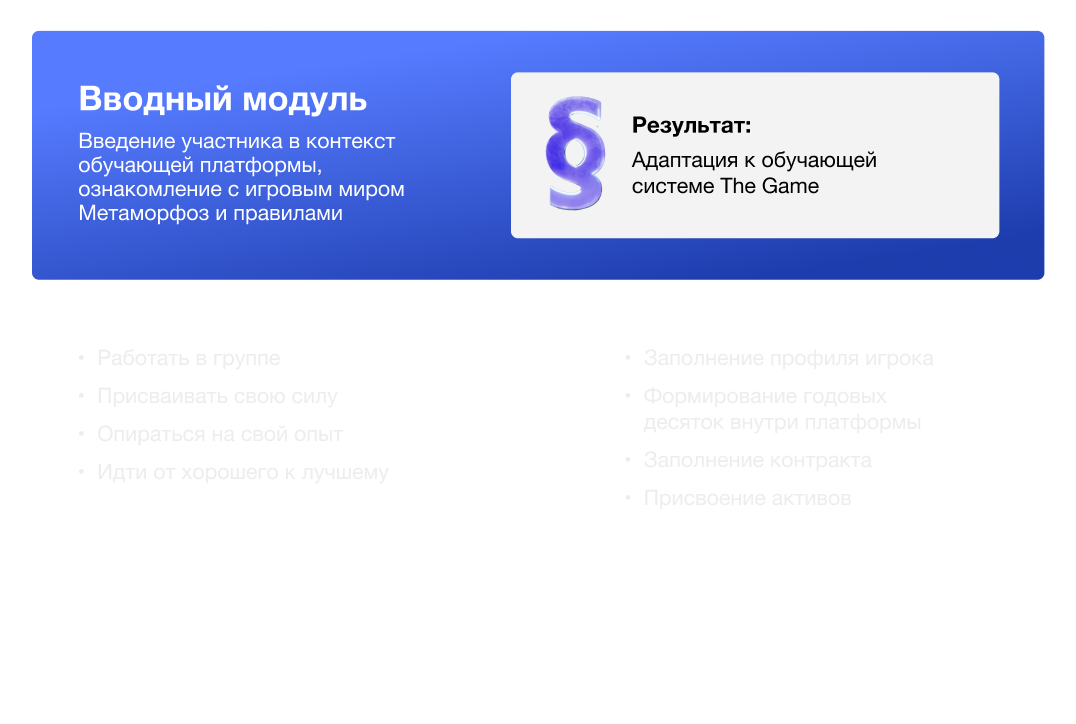 Введение участника в контекст обучающей платформы, ознакомление с игровым миром Метаморфоз и правилами