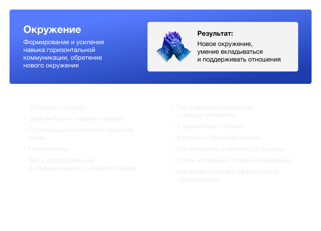 Формирование нового окружения, умение вкладываться и поддерживать отношения