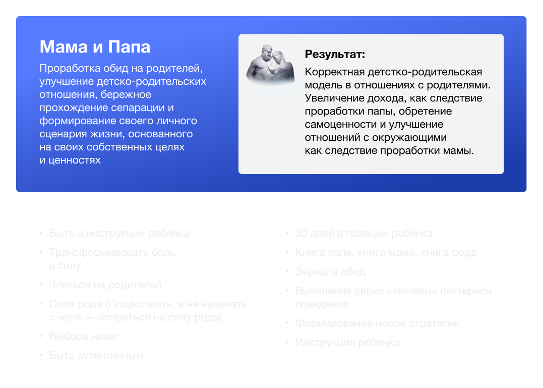 Проработка обид на родителей, улучшение детско-родительских отношения, бережное прохождение сепарации и формирование своего личного сценария жизни, основанного на своих собственных целях и ценностях